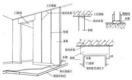 板材隔墻是指輕質(zhì)的條板用粘結劑拼合在一起形成的隔墻。即指不需要設置隔墻龍骨,由隔墻板材自承重,將預制或現(xiàn)制的隔墻板材直接固定于建筑主體結構上的隔墻工程。