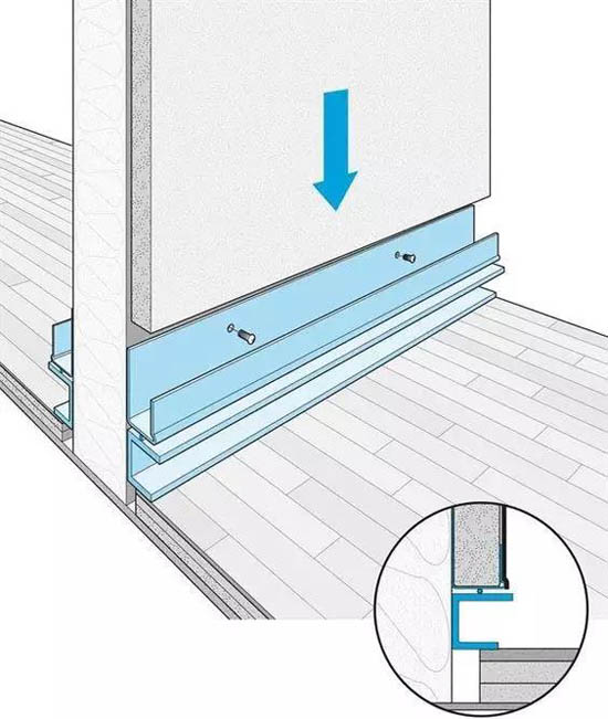 增厚指的是用護墻板,以各種飾面板壓住地面縫隙。還可以在縫隙里加入隱藏燈光,增加空間的高級感。唯一的問題就是護墻板貴到心悸。